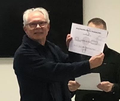 Sådan ser en pipe major ud, når et er gået godt for hans band. Det gjorde det ved Spring Competition Piping & Drumming i Stouby, hvor Dungillie blev nummer et i march foran Heather Pipes and Drums og Zealand Pipe Band. (Vi undskylder over for en af de utrættelige arrangører, Jesper Thomsen, at han er skjult bag diplomet), Billedkvaliteten er ikke helt i top, men det var musikken.